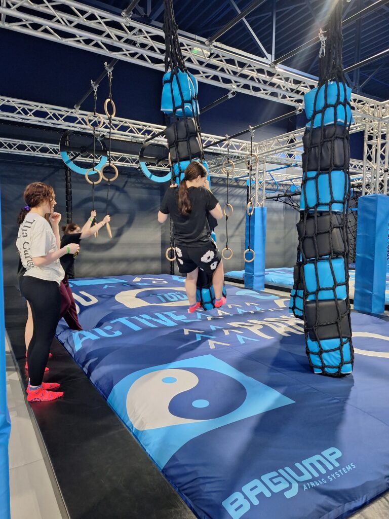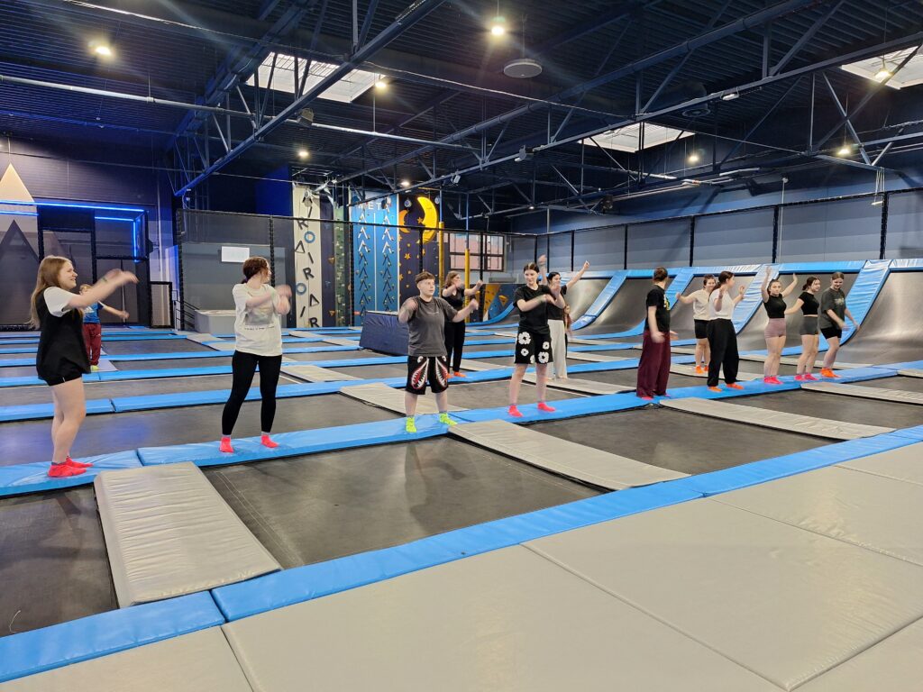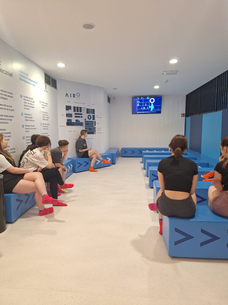Po seansie grupa udała się do AIRO – parku trampolin, gdzie wychowanki mogły aktywnie spędzić czas, ciesząc się świetną zabawą i ruchem. Intensywna aktywność fizyczna sprzyjała integracji grupy i dostarczyła wielu powodów do uśmiechu.